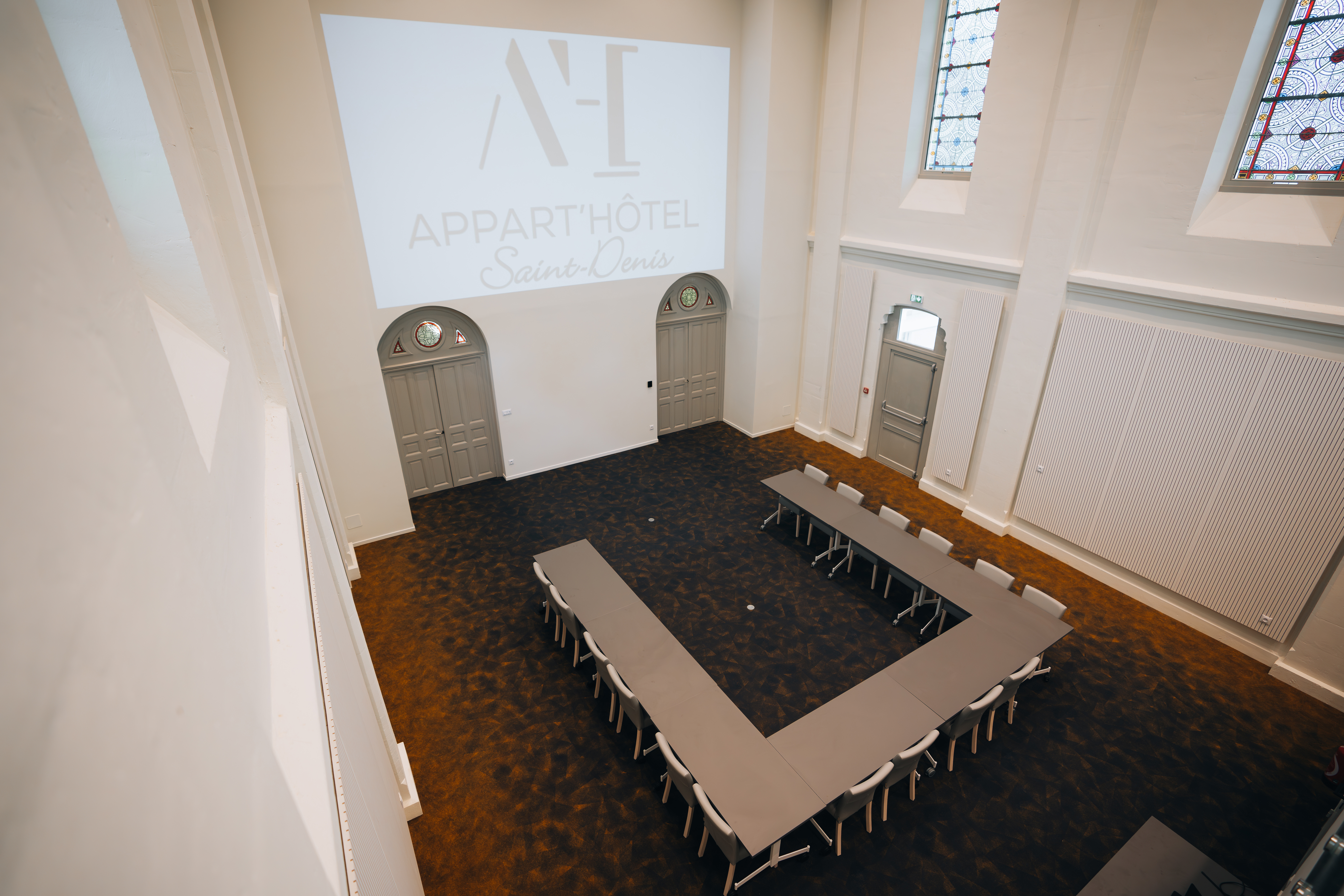 Créée dans l’ancienne Chapelle, Appart’ Hôtel Saint-Denis vous propose d’organiser dans la salle multi-activités vos réunions clients et collaborateurs, assemblées générales de votre association, séminaires de formation, conférences, vernissages, arbres de Noël, … un lieu d’exception unique à Châteauroux.